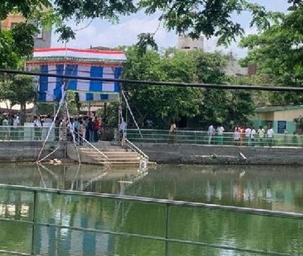 रिपोर्ट्स के मुताबिक यह मंदिर चेंन्नई के मूवरासमपेट में स्थित है। यहां सुबह 10:30 बजे तालाब में एक धार्मिक अनुष्ठान चल रहा था। यहां 25 पुजारी तालाब में थे और पूजा के दौरान ही यह हादसा हो गया।