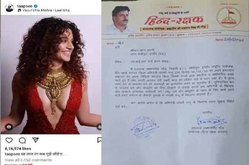Demand to file a case against Taapsee Pannu: इतना ही नहीं ड्रेस के साथ एक्ट्रेस ने देवी लक्ष्मी मां का लॉकेट कैरी किया। जो अपमानजनक है। इस वीडियो के वायरल होने के बाद हिंद रक्षक संगठन ने सनातन धर्म को नीचा दिखाने और भावनाओं को आहत पहुंचाने के लिए एक्ट्रेस के खिलाफ शिकायत दर्ज करने की मांग की है