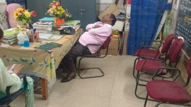 बच्चों की परीक्षा सर पर। शिक्षक मजे से स्कूल में पूरी कर रहा अपनी नींद।