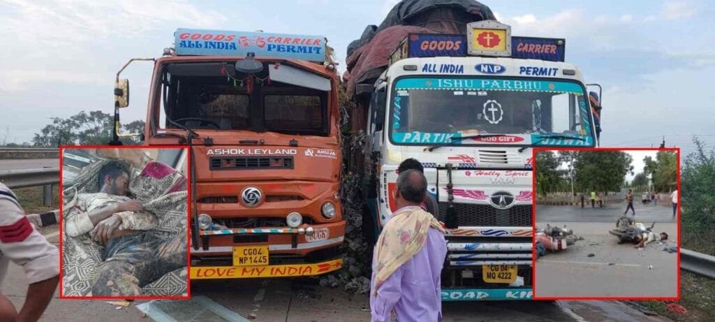 CG में खून से लाल पड़ी सड़क: NH पर दोस्तों ने लगाई मौत की रेस, ट्रकों की भिड़ंत से एक की मौत, इधर ट्रेलर ने 2 लोगों को कुचला