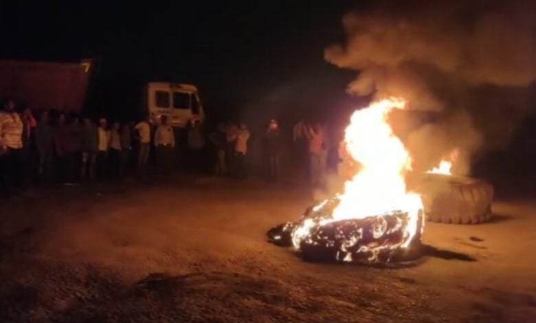 स्थानीय लोगों ने टायर जलाकर चक्काजाम कर दिया है. जिला प्रशासन और विधायक प्रकाश नायक मुर्दाबाद के नारे लगा रहे हैं.