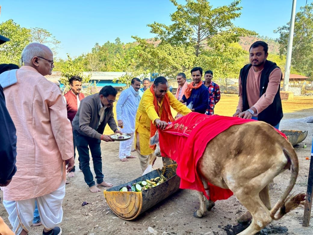 जनादेश परबः मुख्यमंत्री श्री विष्णुदेव साय के सुशासन में आयोजित गौ-पूजन और निःशुल्क पशु चिकित्सा शिविर