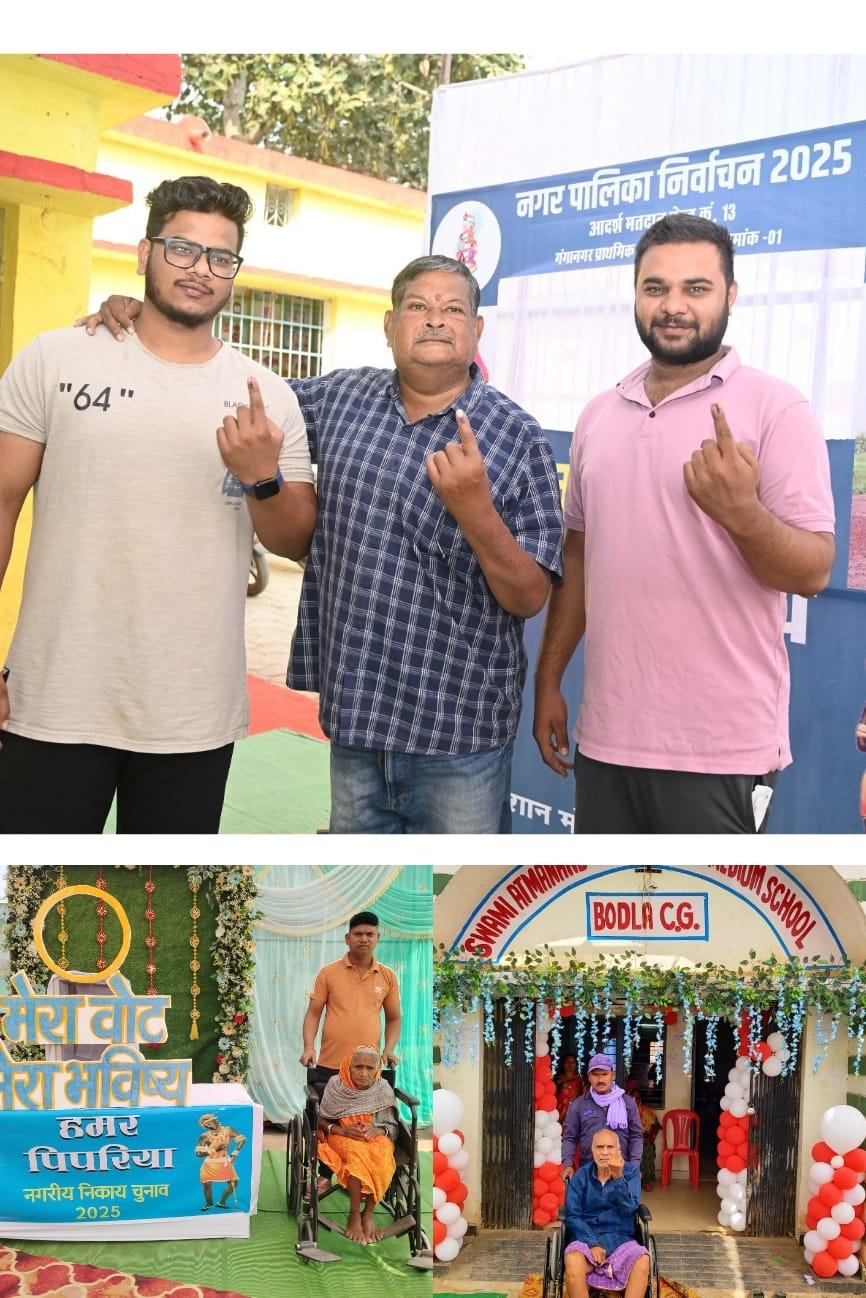 कवर्धा, 11 फरवरी 2025। नगरीय निकाय निर्वाचन 2025 अंतर्गत सात नगरीय निकायों कवर्धा, पंडरिया नगर पालिका तथा नगर पंचायत बोड़ला, सहसपुर लोहारा, पांडातराई, पिपरिया और इंदौरी के महिला, युवा, दिव्यांग और बुजुर्ग मतदाताओ में अभूतपूर्व उत्साह देखा गया। मंगलवार के मतदान के दिन सुबह से ही महिला, युवा, दिव्यांग और बुजुर्ग मतदाताओं ने मतदान केन्द्र पहुंचाना शुरू कर दिया था, उन्होंने निर्भीक होकर अपने मताधिकार का उपयोग किया। कलेक्टर एवं जिला निर्वाचन अधिकारी श्री गोपाल वर्मा के मार्गदर्शन में जिले की सभी 145 मतदान केंद्रों में बुजुर्ग और दिव्यांग मतदाताओं सहूलियतों के लिए उनके मतदान केंद्रों तक पहुचाने के लिए व्यवस्था की गई थी।