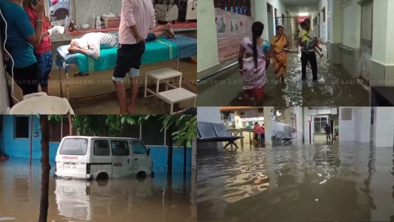 मूसलाधार बारिश के बीच एक गर्भवती महिला को प्रसव के लिए अस्पताल लाया गया, जिसे भी इसी जलमग्न स्थिति का सामना करना पड़ा. स्थिति इतनी गंभीर है कि अस्पताल की एम्बुलेंस भी पानी में डूब गई है और डॉक्टर घुटनों तक पानी में रहकर मरीजों का इलाज कर रहे हैं।